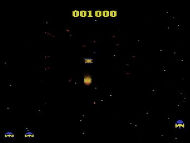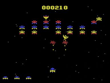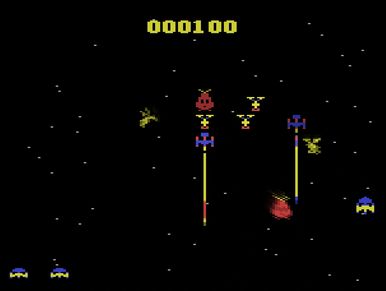 The Galaxians mission has the Gorfian forces dive bombing in groups, unleashing a barrage of cannon fire!