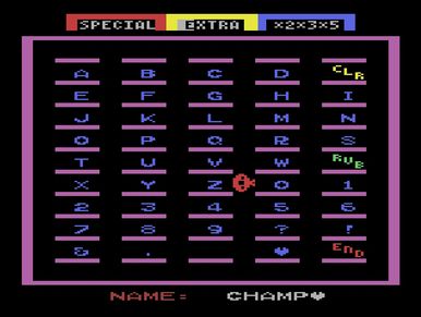 Use the high score entry screen to add in your name (up to 6 characters). Scores can then be saved to an Atarivox or Savekey if available.