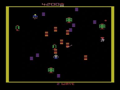 Fire in eight directions while avoiding the grunts, electrodes and indestructible Hulk Robotrons out to kill the humans!